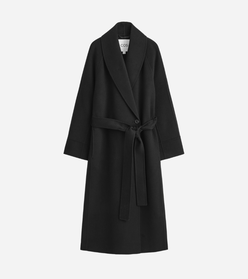 Belted Double-Faced Wool Coat – Black (COS)