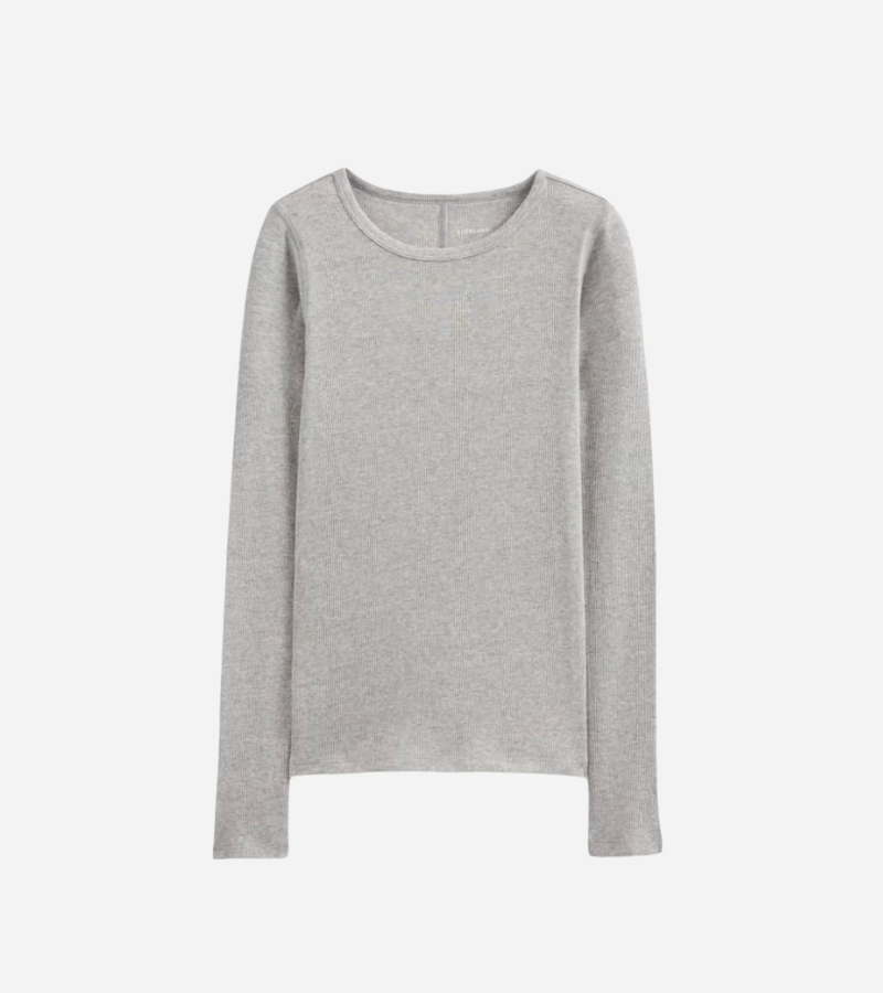 Luxe Rib Long-Sleeve Crew – Grey (Everlane)